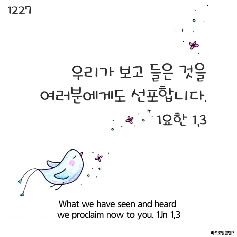 오늘 특별히 요한 사도 축일 지내면서 사도 요한의 모습처럼 우리가 주님으로부터 받은 은혜를 기억하고 다른 이들에게 증거 할 수 있는 사도로서의 삶을 살아갈 수 있기를 청하며 함께 기도했으면 합니다.