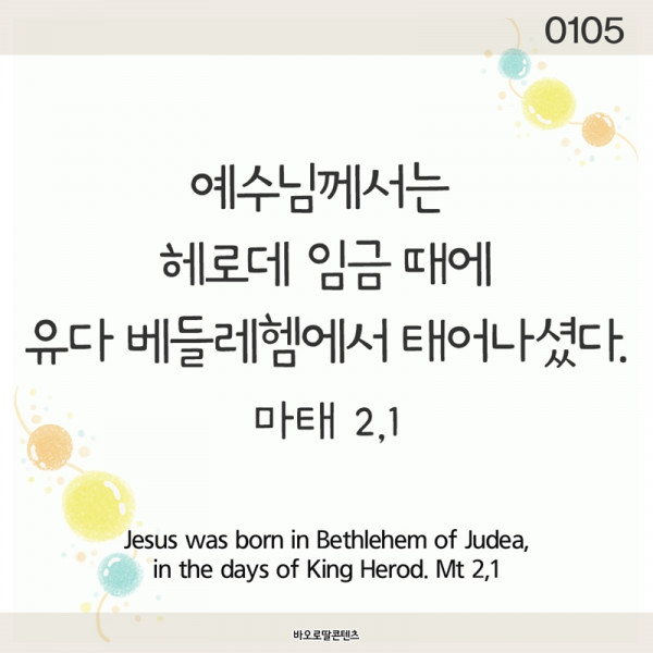 1 예수님께서는 헤로데 임금 때에 유다 베들레헴에서 태어나셨다.