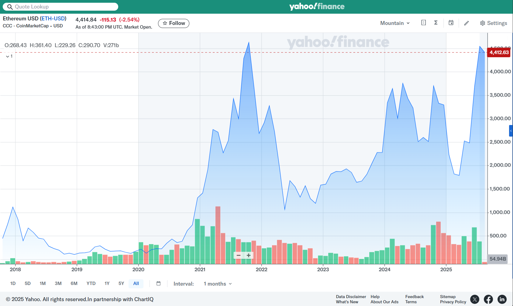 ㅇ 최근 급등세를 보이던 이더리움은 어제에 이어 -2.54% 하락