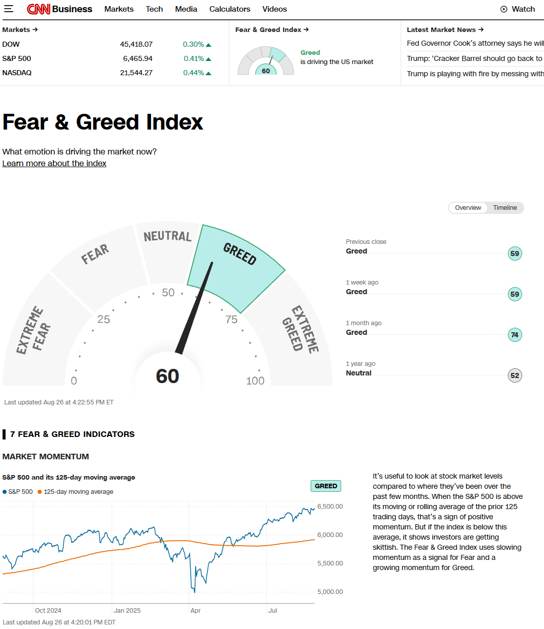 ㅇ Fear & Greed 지수 : 60(+1), 탐욕 구간 유지