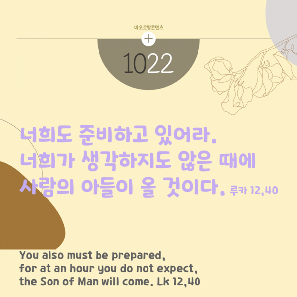 You also must be prepared, for at an hour you do no expect, the Son of Man will come. Lk 12,40