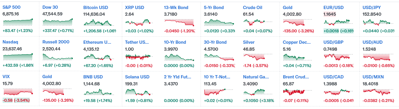 | [10.25(토)] 데일리 마켓 브리핑 - 뉴욕 증시, CPI 지수에 3대 지수 최고치 (0) | 2025.10.25 |