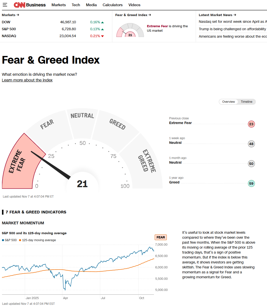 ㅇ Fear & Greed 지수 : 21(-2) 극도 공포 구간 유지