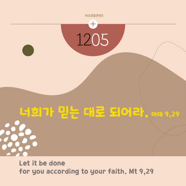 오늘 복음에서 두 눈먼 사람이 예수님을 따라오며 외칩니다. "다윗의 자손이시여, 자비를 베풀어 주십시오!" 예수님께서 "내가 그런 일을 할 수 있다고 믿느냐?"고 물으시자 그들은 "예, 주님!"하고 대답합니다. 그들의 믿음은 진짜였고, 그 믿음대로 눈이 뜨이는 기적을 체험했습니다.