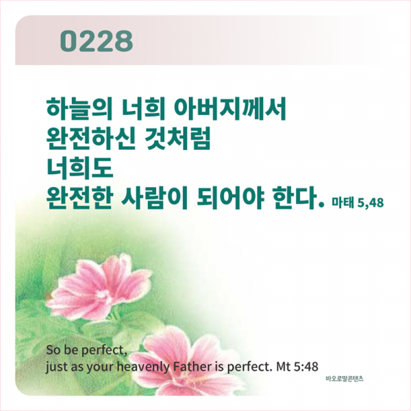 [묵상] 하늘의 너희 아버지처럼 완전한 사람이 되어야 한다. (마태오 5,43-48) - 사순 제1주간 토요일 (2026.2.28.)